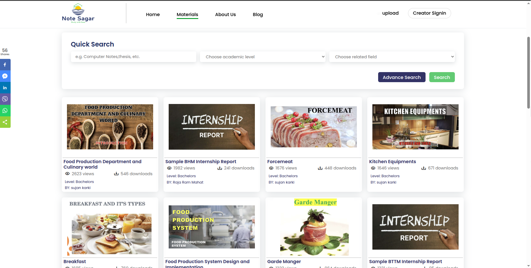Educational resource-sharing platform for students to access reports and documents. It offers solutions for Research Paper, Assignments, Notes and more. It provide the platform to download the resources that are been uploaded by various resource personnel from different fields of study with no additional charges.